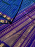 A stunner muthuseer zari kattam kanchivaram silk saree pure handwoven, in a peacock blue shade very unique zari muthu seer woven all over the body contrast border and pallu with purple blue shot, granduer zari woven pallu with anbapakshi and diamondkan and border with kuyilkan and lavangamoggu