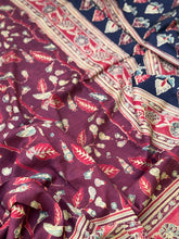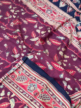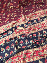 Natural Dyed Ajrakh Double Resist floral Block printed mulberry Silk Saree