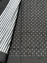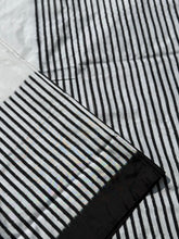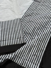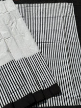 A double warp and weft tie dyed ikkat handwoven saree in pure mulberry silk with contemporary style of design , the body has complete interplay with stripes on lower body