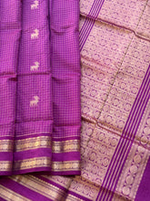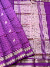 A gorgeous lilac shade with zari Oosi kattam and pallu kanchi silk cotton saree with checks or kattam all over the body