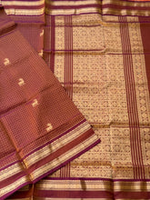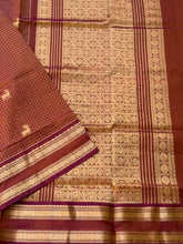 A gorgeous rust brown shade with zari Oosi kattam and pallu kanchi silk cotton saree with checks or kattam all over the body