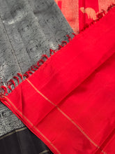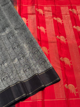 A stunner Masterpiece Garudaseva Adai kanchivaram woven silk saree in black and red