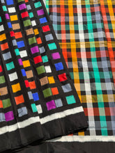 A contemporary take on solid block pattern multicolour double ikkat silk saree